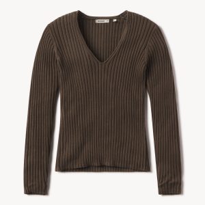 Fluted Rib V-Neck Long Sleeve