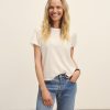 Slim fit crewneck tee cut from a supersoft 130 GSM blend of bamboo, cotton, and wool. Features a straight hem, a self bound neck, and raised armholes that hug the contours of the shoulders. Garment washed for a lived-in feel.