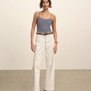 Slim fit, vintage-inspired camisole crafted from a delicate blend of Italian cotton and linen. Constructed from a structured 4×2 rib with a textured hand and a touch of stretch. Garment washed for vintage look and feel.