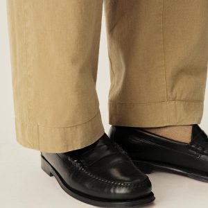 Our collaboration with G.H. Bass recuts the iconic Larson loafer in Horween’s renowned Chromexcel leather, featuring traditional moccasin construction, a handsewn toe, and a Blake-stitched sole. Ironed edges on the outsole, a decorative lip around the toe, and the distinctive ‘beefroll’ penny strap complete the look. Fully lined.