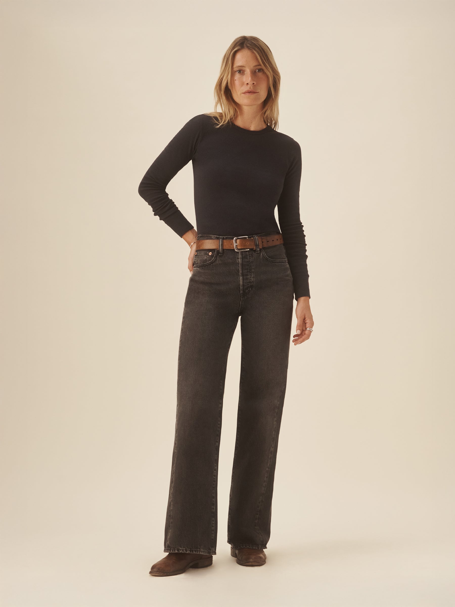 Crafted from a superfine, exceptionally soft cotton rib, this long sleeve is a go-to for effortless wear. It has a slim fit, a wide crewneck, cuffs, and a hip-length hem. Garment dyed and washed with softener for a lived-in feel.
