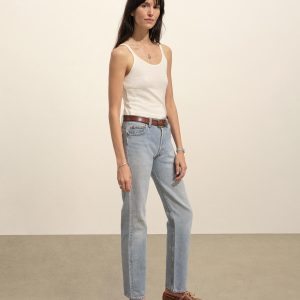 Slim-fit, vintage-inspired scoop tank made from a blend of 60% recycled cotton and 40% cotton. Featuring a combo of jersey fabric and scallop stitch details at the armholes and neckline, it also includes baby snaps for the bra holder.