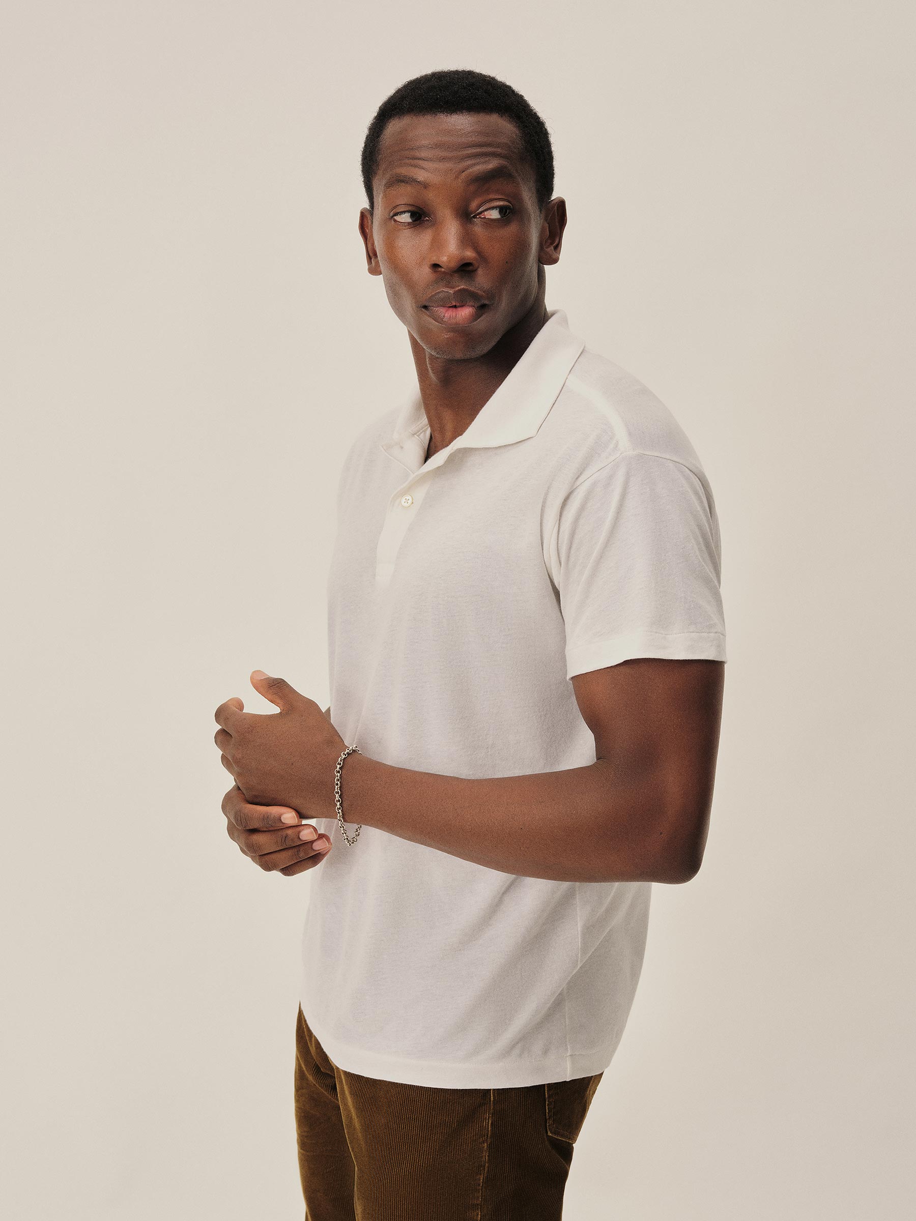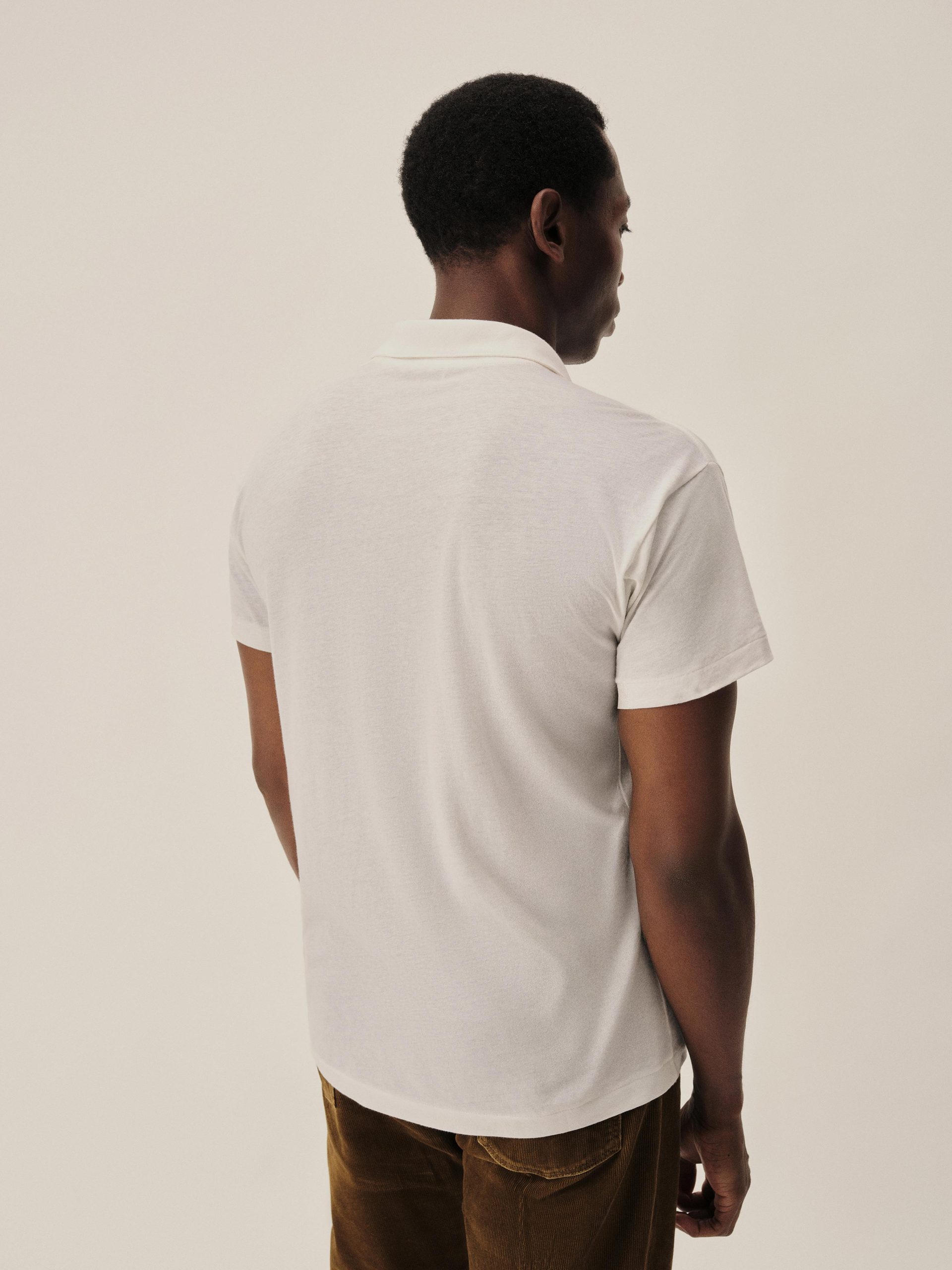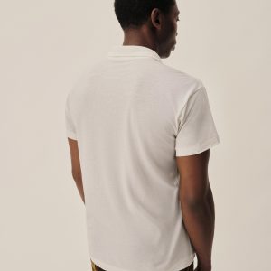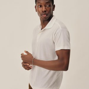 Classic fit polo crafted from a custom, superfine 56 singles blended cotton-linen yarn, spun and knit exclusively in Japan. This fabric is designed to combine the smoothness of a premium yarn with the subtle texture of something more rugged. The result is a polo that’s smooth, cool, and light as air, with a subtle silky hand feel. Finished with blind hems at the sleeves and bottom, a two-button mitered placket, overlocked seams, seam tape binding, and neck binding for reinforcement.