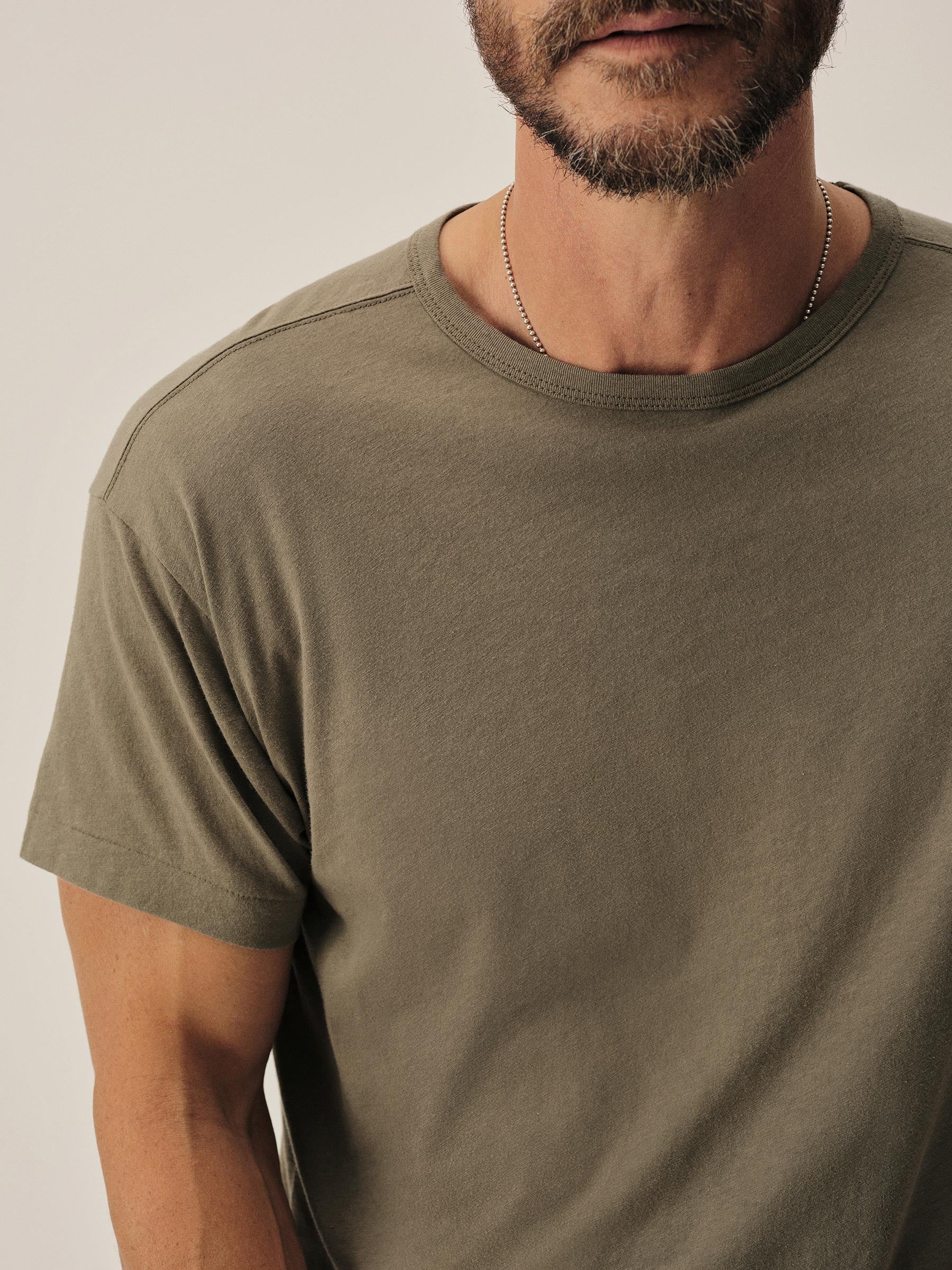 Crafted from a custom-spun, super fine 56 singles blended cotton-linen yarn, spun and knit exclusively in Japan. This fabric is designed to combine the smoothness of a premium yarn with the subtle texture of something more rugged. The result is a tee that’s smooth, cool, and light as air with a subtle silky hand feel. Finished with a rib-bound crewneck, blind hems at the sleeves and bottom, and overlocked seams.