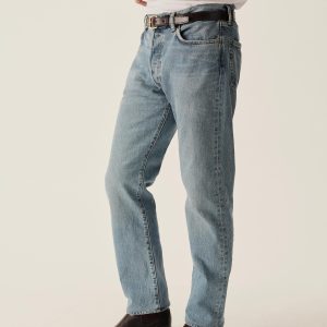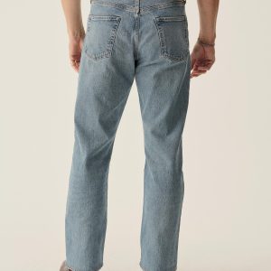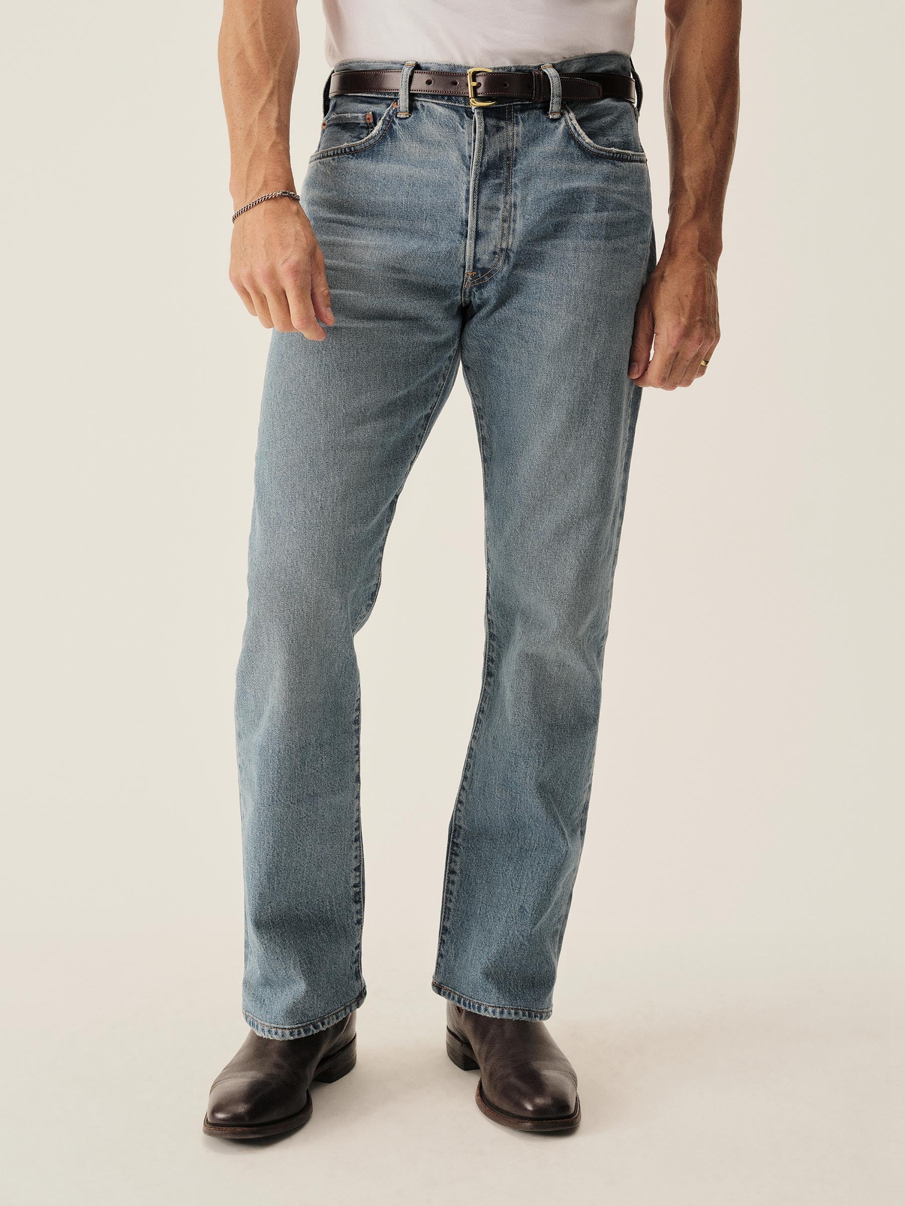 A classic 5-pocket jean in our Ford Standard fit: mid-rise, straight through the thighs with a taper below the knee. Inspired by our favorite vintage jeans, this 14 oz denim from Japan-based Kaihara mills has a hint of stretch and an organic texture that develops more character with every wear. Garment rinsed for a lived-in feel. Details include copper rivets and a metal tack button fly.