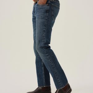 A classic 5-pocket jean in our Maverick Slim fit: Mid-rise with a clean, narrow fit through the thigh and leg. Button fly. Inspired by our favorite vintage jeans, this 14 oz denim from Japan-based Kaihara mills has a hint of stretch and an organic texture that develops more character with every wear. Garment rinsed for a lived-in feel. Details include copper rivets and a metal tack button fly.