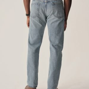 A classic 5-pocket jean in our Cowboy fit: Slightly higher rise with a tailored fit through the thigh and leg. Inspired by blue jeans from the 1940s through the 1960s, this shuttle loomed 14 oz. selvedge denim is unsanforized, and has an organic texture that develops more character with every wear. Garment rinsed for a lived-in feel. Details include copper rivets and a metal tack button fly.