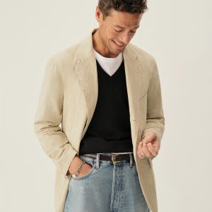 Tailored 3-roll-2 button blazer inspired by timeless vintage suiting. This 5 oz cotton seersucker has a rippled texture that wicks moisture and maintains airflow making it ideal for warmer climates. Details include two patch pockets, two internal welt pockets, and a notched lapel. We left it unlined and omitted the back vent and cuff buttons for a casual, streamlined look. Constructed with hand-linked seams and garment washed with enzymes and softener for a lived-in feel.