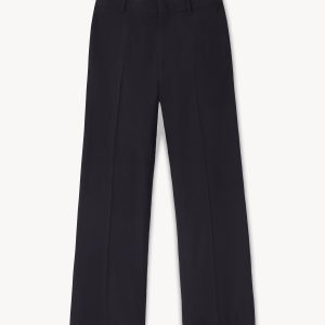 Mid-rise cropped trousers, cut from 100% Japanese wool. Featuring front slash pockets and back welt pockets with a single button closure. Finished with horn buttons, a hook and bar fastener, and a stay button.