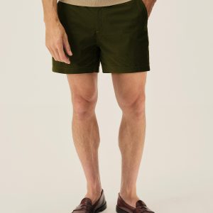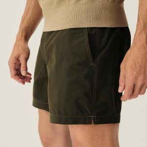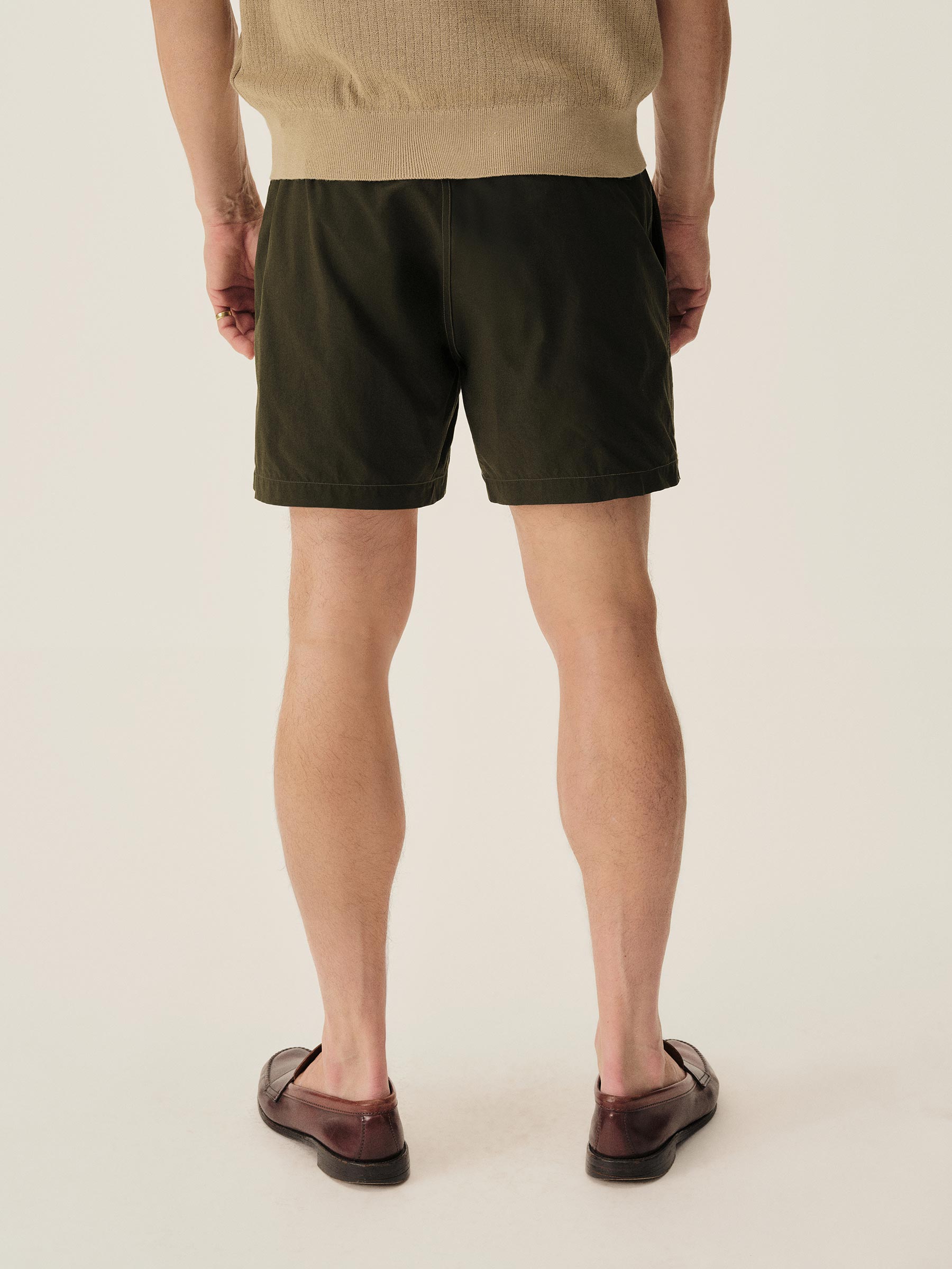 A classic-fit resort short made from sturdy nylon twill, cut with a slightly shorter inseam. Featuring a zipper fly, a button closure, waistband adjuster tabs with metal buckles, and a zippered back pocket.