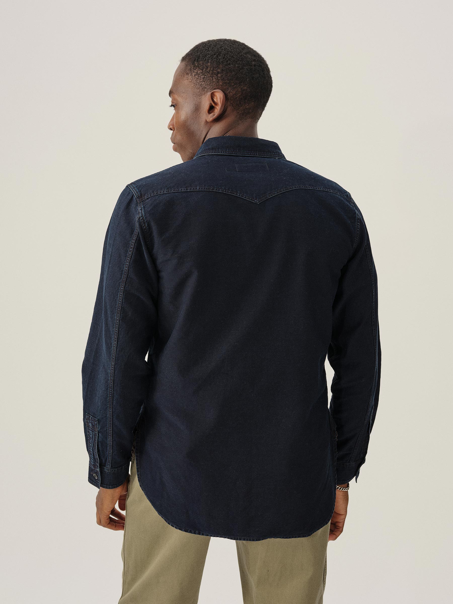 We reimagined a miner’s shirt from the 1930s in lightweight cotton sateen. After washing it for a well-worn feel, we put it through a specialized dye process to throw an accent on the seams while preserving the deep indigo hue. A trim fit and Western yoke complete this vintage-inspired piece.