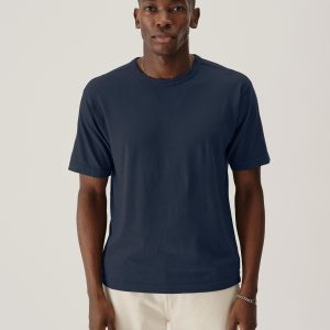 Classic fit short sleeve crewneck tee with our signature curved hem, cut from USA grown 145 GSM cotton with a light slub texture and sewn at BM Knitting Mills in Mohnton, PA. Constructed with self-neck binding and a flat stitch finish for comfort. Garment washed with enzymes and softener for a lived-in feel.
