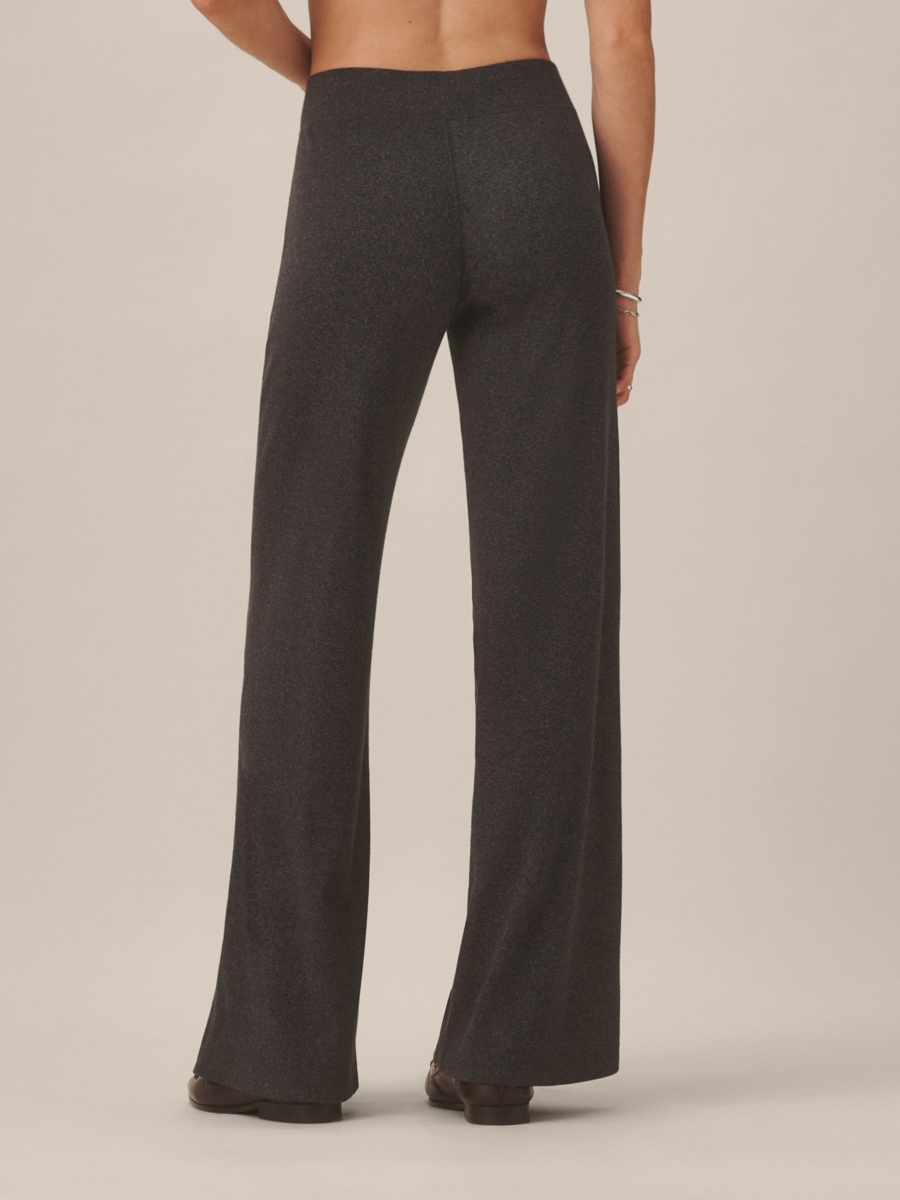 Straight leg, high-waisted 2×2 rib knit pant cut from 295 GSM stretch cotton that holds it shape. Fits comfortably at the waist with a wide elastic waistband with a full length inseam measuring 31 3/4”. Garment washed for a lived-in feel.
