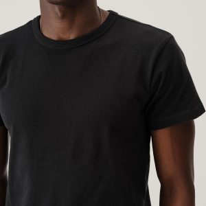 Cut from a midweight 200 GSM USA-grown cotton, developed, milled, and sewn at BM Knitting Mills in Mohnton, PA. This classic fit crewneck tee has a straight hemline, bound neck and screen-printed label for comfort. Constructed with a split-needle cover stitch at shoulders and armholes. Double-washed for a soft, smooth texture and consistent fit.