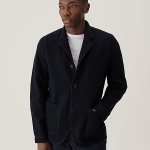An Ivy-inspired American blazer crafted from a blend of wool and cashmere. Designed with a 3-roll-2 button stance, open patch pockets, and a functional sleeve vent with two horn buttons. Cut with a center back seam and left unlined through the body for a relaxed, unstructured feel, while the sleeves are fully lined in viscose for smooth layering.